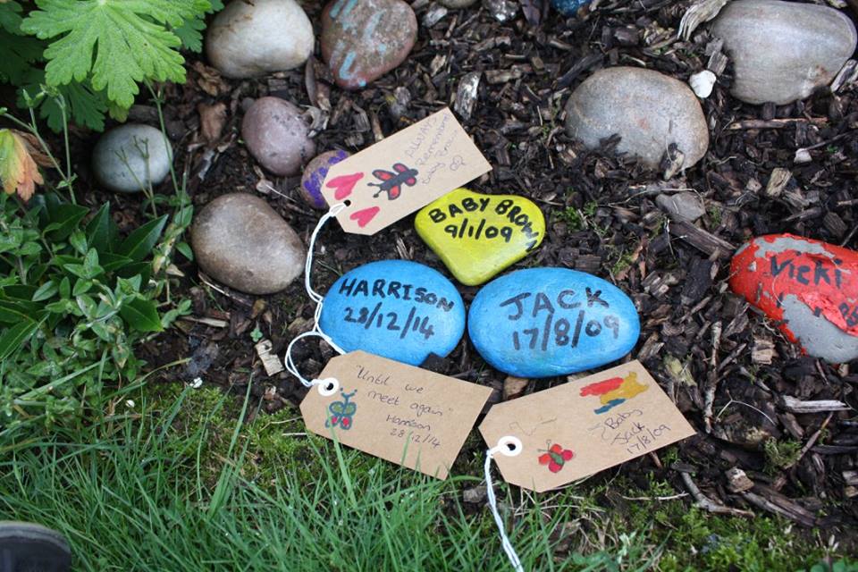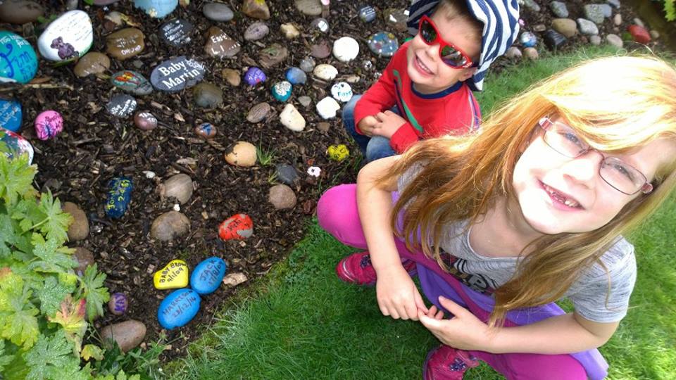 Then in July 2016, I stopped via social media a S.A.N.D.S Staffordshire and noticed there family day at the S.A.N.D.S. Garden, so thought be great way to return and place our stone, along with two close friends for their loss. Both my children helped sort the stones, picking and painting them.